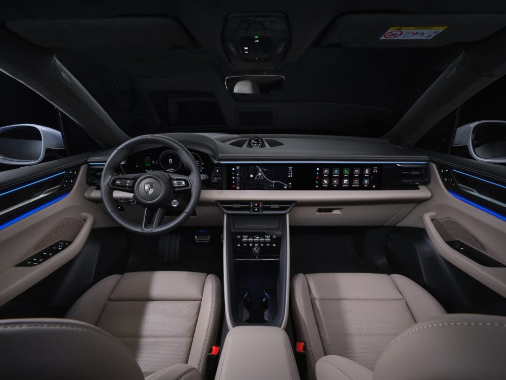 Depending on the model and equipment fitted, the driver and front passenger now sit up to 28 mm lower than before, while the rear passengers sit up to 15 mm lower with increased legroom. The interior is unmistakably Porsche: the width of the cockpit is emphasised by an integrated black panel. The rising design of the centre console heightens the impression of a low and performance-focused position in the vehicle. At the same time, large windows give a light and airy feel to the interior space. In addition to the modern digital user interfaces, there are also select analogue control elements – for example, on the air vents and the air conditioning controls. An LED light strip is integrated into the thoughtfully designed trim strip of the cockpit and doors. It acts as both ambient lighting and a communication light. Depending on the situation, it provides information or warnings – such as for greetings, charging processes or in conjunction with the driver assistance systems. The equipment in the new Macan enables a high degree of customisation.