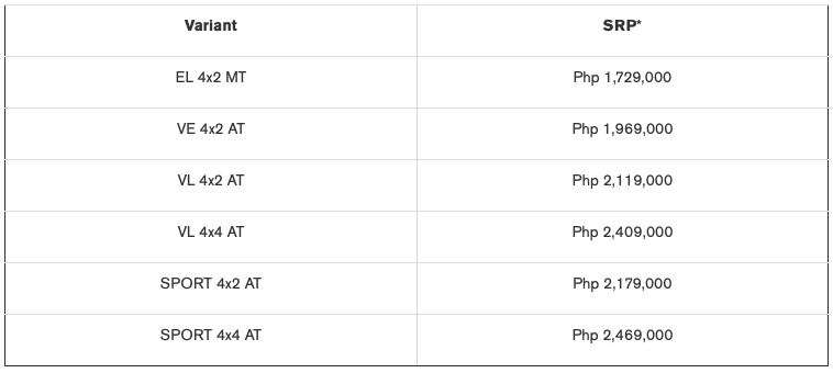 The 2024 Nissan Terra is now available in all Nissan dealerships nationwide at the following prices: