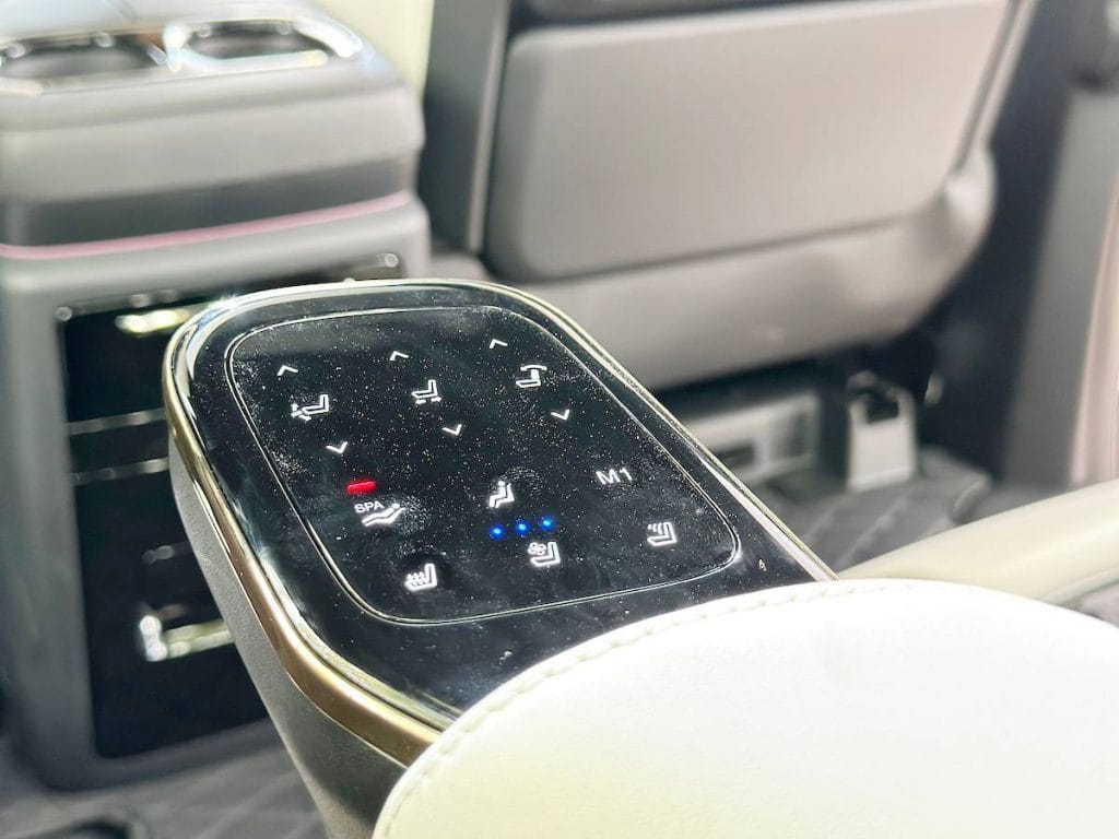 Inside the M8, the focus on comfort and convenience is evident. The 2-2-3 seating configuration across its spacious cabin ensures an indulgent experience for both drivers and passengers. Front seats feature extensive power adjustments, ventilation, and heating functions, while the second row boasts dual Captain’s Seats with various power adjustments, seat massage functionality, and illuminated pedals.