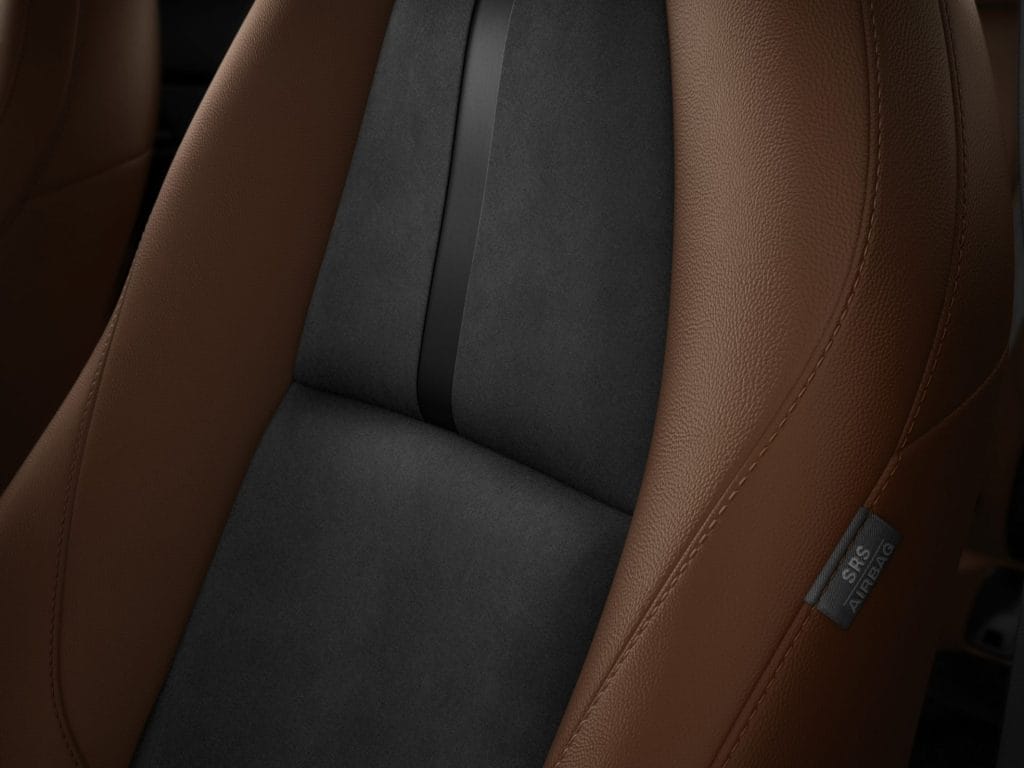 Complementary tones and high-quality textures give the new CX-30’s interior an upscale look and feel. New gun metallic accents on the door handles, dashboard, AC vents & controls, and transmission shifter ring are appealing to the eyes. The seats are now swathed in a sophisticated combination of Terracotta Leather & Black Leganu Suede upholstery, while Black Leather & Leganu Suede with contrasting Terracotta stitching tastefully adorn the cabin. The seats are highly ergonomic, promoting the spine’s natural curvature while also providing a clear field of view of the road ahead. The controls have all been optimized for operating stability, ease, and comfort—down to the use of consistent lighting and font types.