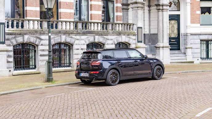 Here, the shimmering “Final Edition” lettering elegantly indicates the special edition, as does the “1 of 1969” badge on the side of the C-pillar. The Union Jack taillights refer to the British origins of the MINI Clubman.