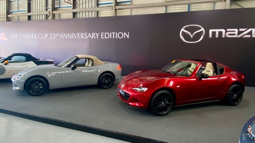 A special, limited-edition MX-5 Miata Cup 23rd Anniversary Edition is also available. This 23-unit run uniquely developed by Mazda Japan for the Philippine market in honor of the 23rd Anniversary of the Miata Cup comes with a bespoke racing livery designed by local artist Jaykee Evangelista, and is inspired by classic motorsports liveries.