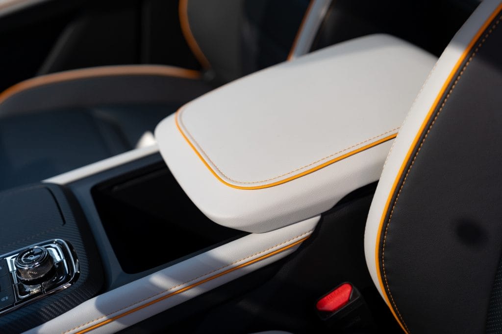 Inside its spacious cabin, the new Territory Sport’s charcoal black headliner and pillars, domino and chalk leather perforated seats, door trims and instrument panel with high gloss black painted IP strip set the scene for refined style and comfort – with cyber orange accents that adds to its overall sporty vibe.
