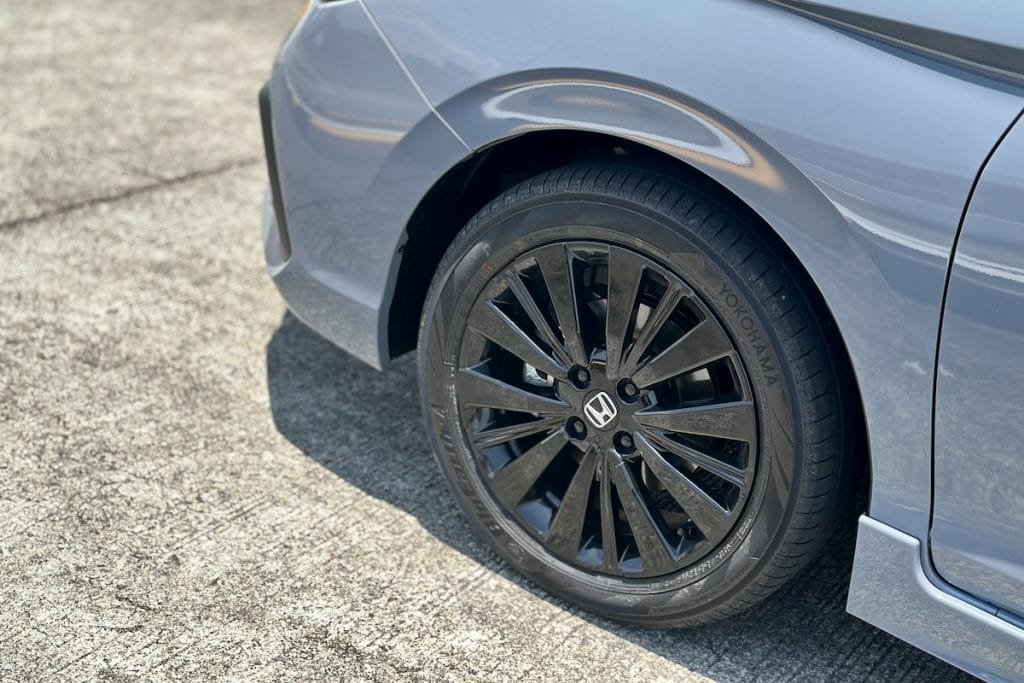 Design-wise, the facelifted Honda City Hatchback RS sports subtle tweaks that collectively give it a refreshed, modern look. The front fascia now features a new honeycomb grille, a more pronounced bumper, and a redesigned fog lamp housing. There are new side skirts and a restyled diffuser that add to the vehicle’s sharpness. The redesigned 16-inch black alloy wheels not only look striking but also complement the new Sonic Gray Pearl paint option, giving the hatchback a sophisticated edge.