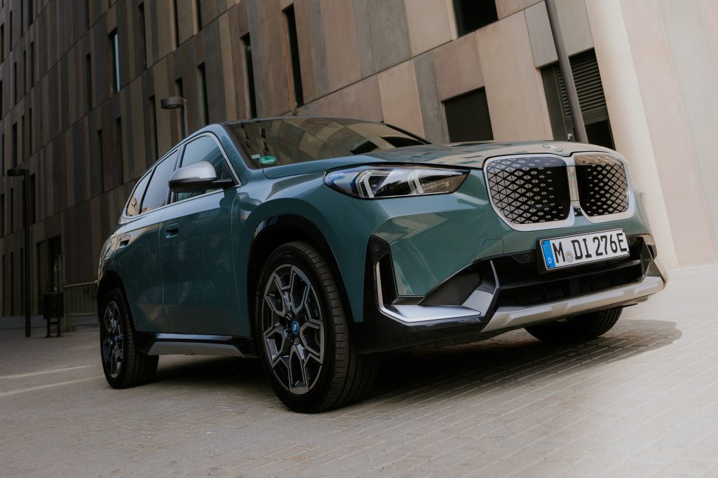 Style-wise, the iX1’s xLine package commands presence on the road. Upfront, it has adaptive LED headlights, a prominent (but blanked out) grille, and various X-shaped design elements. The iX1 rides on 18-inch aerodynamic wheels and comes in six colors—Mineral White, Black Sapphire, Space Silver, Phytonic Blue, San Remo Green, and Cape York Green.