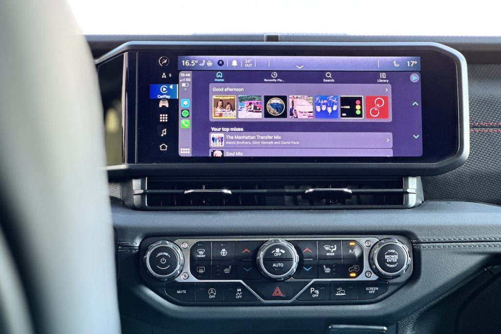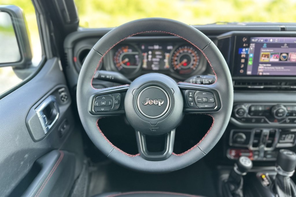 One of the standout features of the new Wrangler Rubicon is its massive 12.3″ Uconnect touchscreen. This upgrade not only provides a larger interface but also enhances functionality. Equipped with wired Android Auto and Apple CarPlay, the Uconnect system allows for seamless smartphone integration. The touchscreen also includes built-in navigation and Jeep’s Off-Road Info Pages, which provide real-time data like pitch, roll, and power distribution. This feature ensures you have all the information you need, whether you’re on the road or deep in the wilderness.