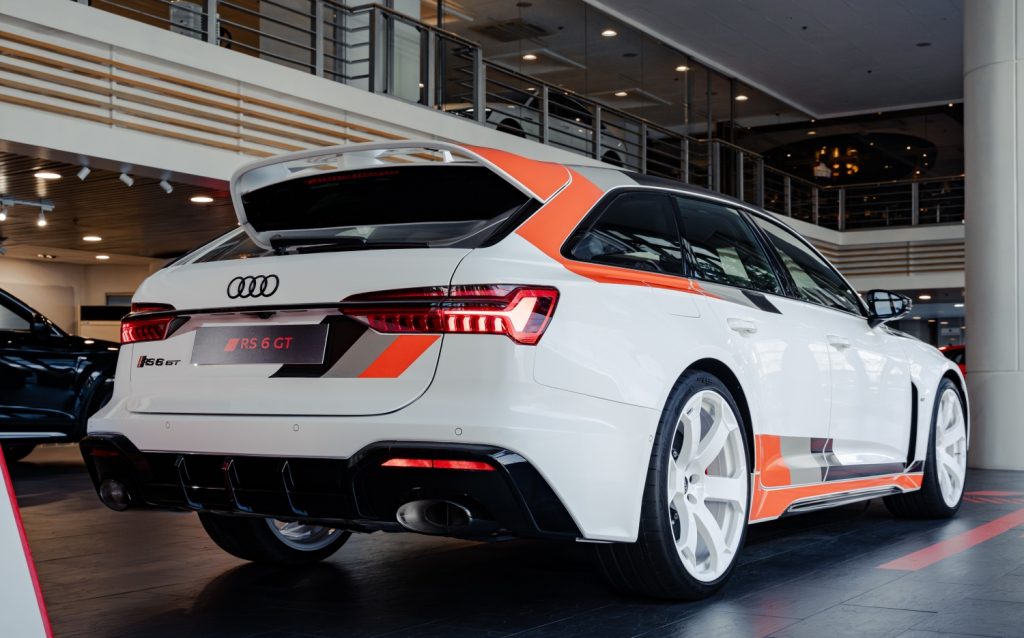 In addition to its performance, the RS 6 Avant GT features an aggressive design that commands attention. With a striking pass-through roof edge spoiler, redesigned rear diffuser, and exclusive 22-inch wheels, the vehicle is as visually stunning as it is powerful. High-gloss black accents on the Singleframe grille and air intakes amplify its sporty appearance, while lightweight carbon fiber elements contribute to its aerodynamic efficiency.