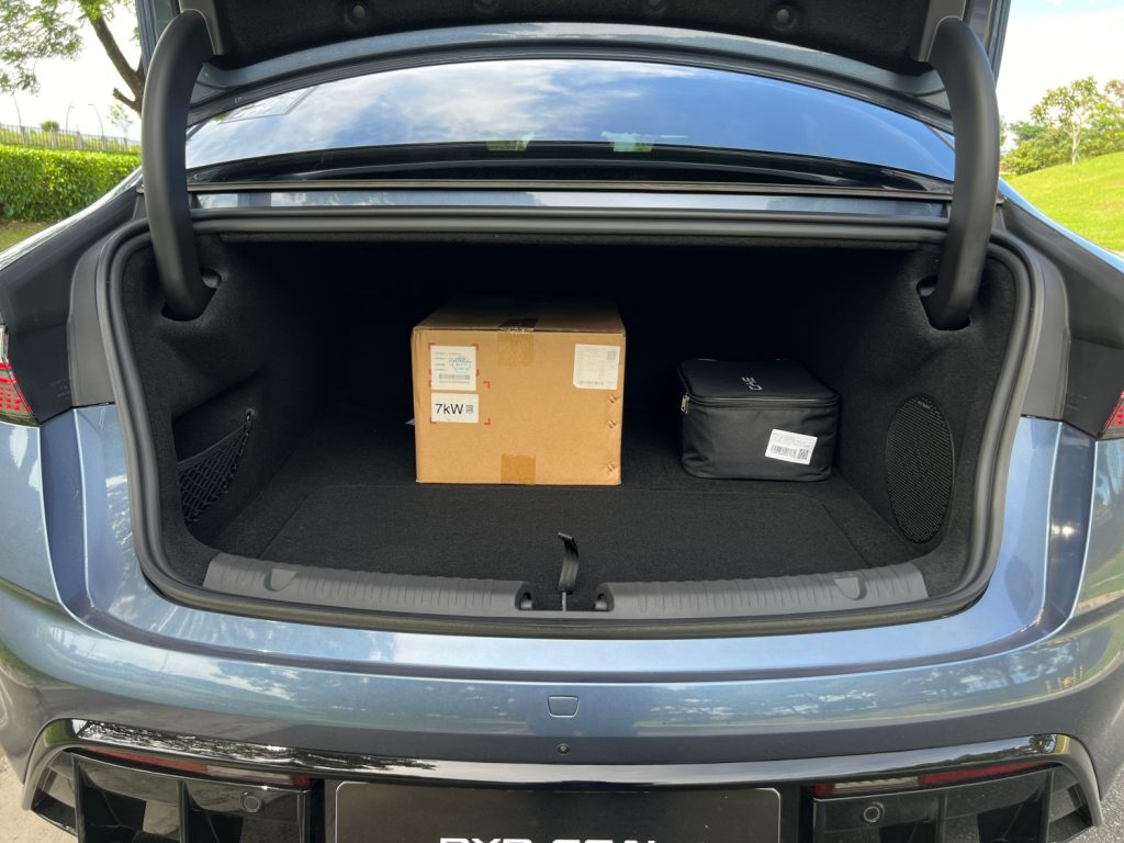 The trunk has a squarish shape and a sizable 400 liters of space. There’s also a compartment under the trunk floor, which is enough to store other items like shoes, extra apparel, and whatnot. Then there’s another pocket for the tools and chargers. If these are not enough, there’s an extra 50 liters of space under the hood as this has no combustion engine at all.