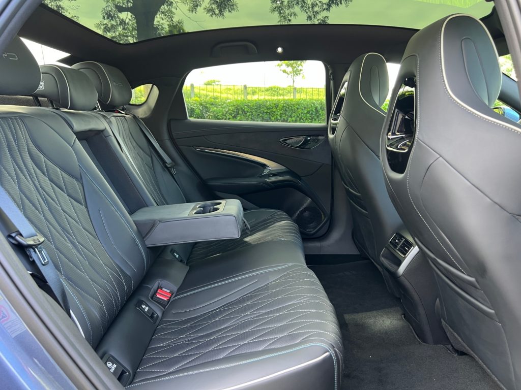 Visually the rear section is a couch on wheels. The seats have a classic stitching pattern complemented by the center armrest with cupholders, rear air vents, ambient lighting, and charging ports in both Type-A and Type-C guise.