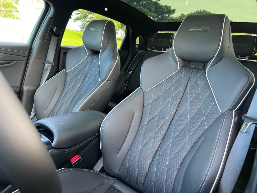 There’s a heads-up display but BYD retained the 10.25-inch digital instrument cluster for the driver. They also get 8-way power seats with 4-way Lumbar Support while the front passenger has theirs with 6-way power.