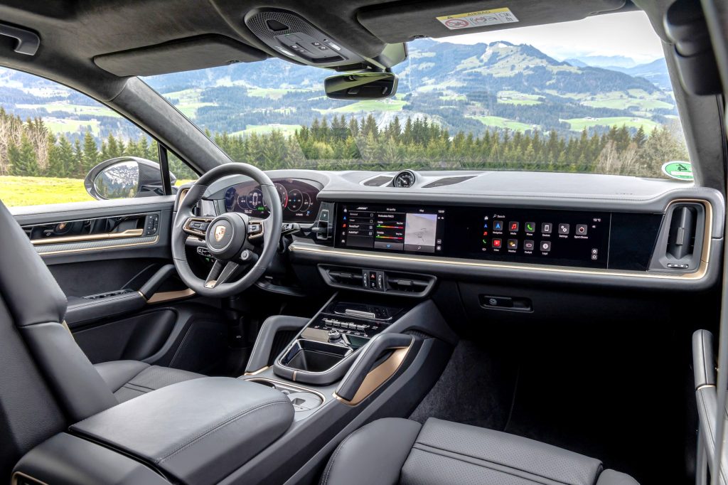 At the heart of the Cayenne E-Hybrid is the Porsche Driver Experience, which puts the driver at the center and creates the perfect balance between analogue and digital elements. Key functions are easily accessible near the steering wheel, and the automatic transmission selector is conveniently placed on the dashboard. The cockpit includes a fully digital 12.6-inch instrument cluster with customizable display options and a 12.3-inch Porsche Communication Management (PCM) touchscreen. For the first time, a 10.9-inch display for the front passenger enhances the infotainment experience.