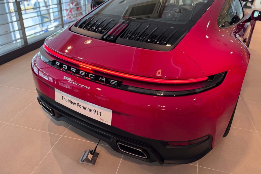 At the back, the refresh is decided more subtle, but numerous. The rear grille’s five-fin design connects to the rear window and then to the retractable spoiler. The LED light strip and “PORSCHE” logo now appear deeper and wider, while the number plate is now positioned higher than before. Staggered wheels—20s at the front (245/35R20) and 21s at the back (315/30R21)—are standard equipment. As always, the 911 Carrera receives dual rectangular tail pipes, while the 911 Carrera S gets quad tail pipes.