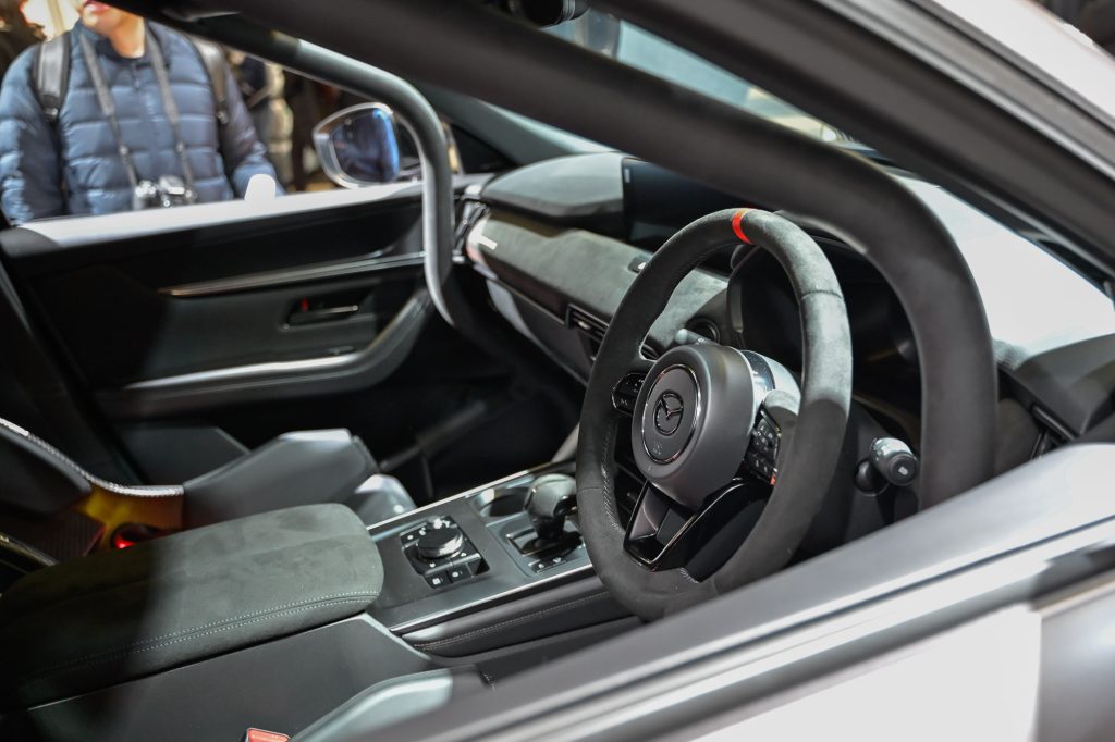 Apart from that, the Mazda Spirit Racing Rally Concept showcases the brand’s commitment to exploring all forms of motorsports. Essentially, a CX-60 with Brembo brakes, a rally-inspired roof scoop and wing, a roll cage, bucket seats, and lots of Alcantara inside.