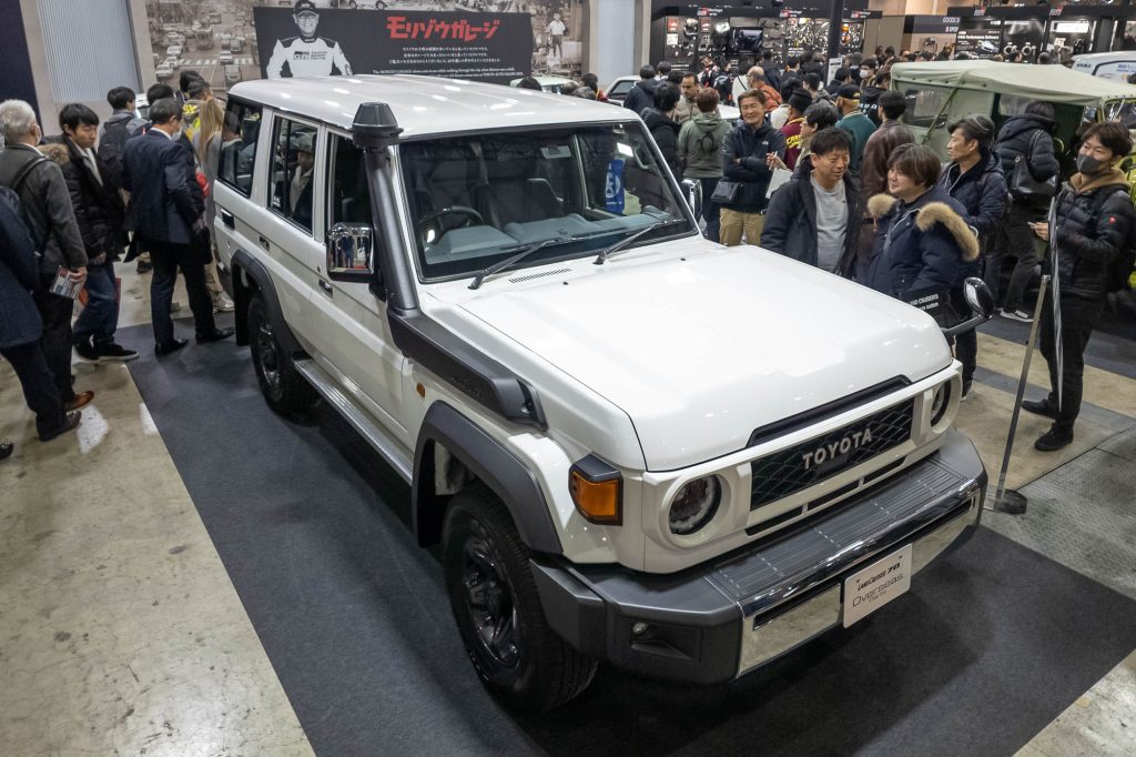 On the other side of the booth was the Land Cruiser Base, where three different SUVs were on display– an original BJ20, an LC70 fitted with aftermarket parts, and the entry to the 2025 Dakar Rally, a Land Cruiser 300 complete with all modifications needed for the grueling rally race.