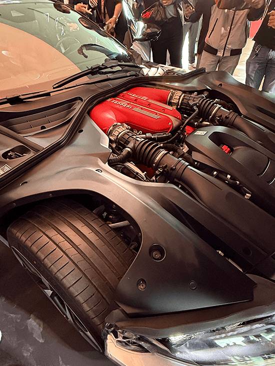 The V12 engine is related to the one found in the Ferrari 812 Competizione and for that, they happen to incorporate many track-to-road developments like titanium con rods, a ceramic catalytic converter, and sliding finger followers that opens and closes the valves. It also happens to implement nifty solutions to make it compliant to the ever-tightening global emissions standards.