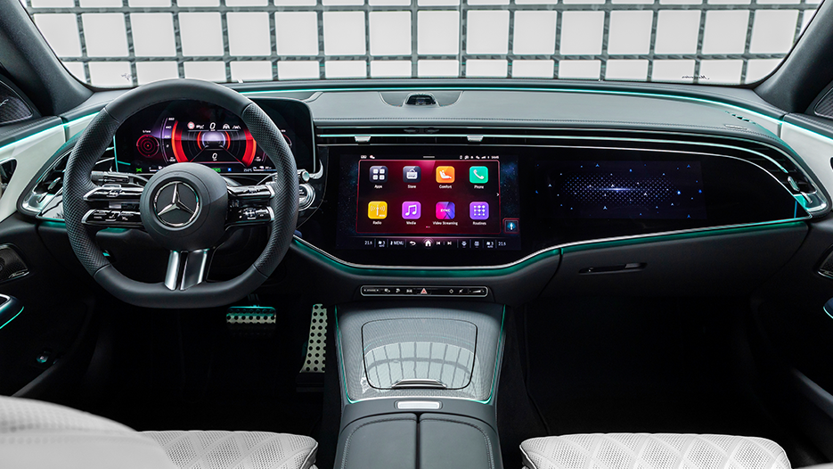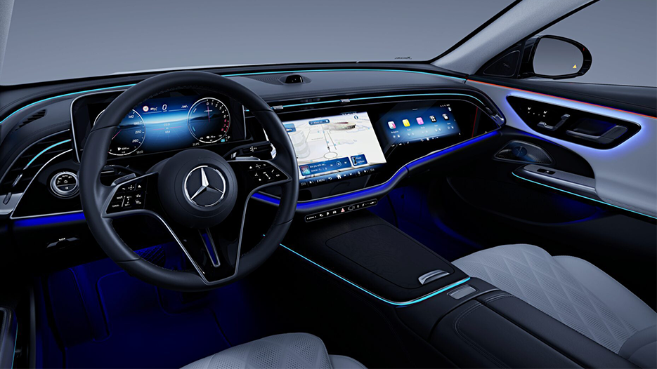 Inside, the E-Class PHEV offers a sanctuary of sophistication. Every surface is finished with premium materials, accentuated by ambient lighting and ergonomic design. Adding more through the Burmester surround sound system with 17 speakers, 4 exciters and 730 watts of power, you’ll enjoy a unique 4D experience. Speaker-like exciters unfold the new dimension with a fascinating sound massage. Your vehicle can also play music in Dolby Atmos quality for a particularly engaging surround sound.