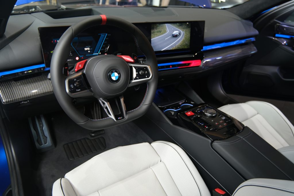 Aside from the M-specific control panel on the center console, the new M5 also sports a new flat-bottom M leather steering wheel with illuminated M buttons, M multifunction power seats and the BMW Widescreen Display which includes M-specific content.