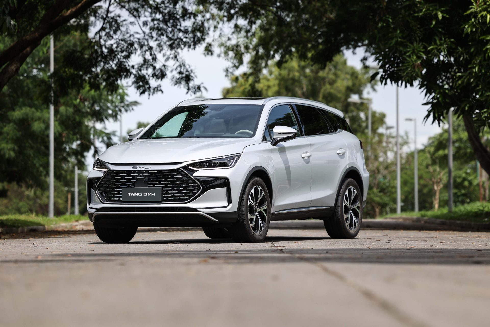 BYD utilized a Dragon Face grille for the Tang DM-i, making it very distinct from its battery-electric counterpart. This new front face is complemented by an all-LED lighting system with Automatic Headlights for a sharper look. There’s 20-inch alloy wheels, minimal cladding for more elegant angles, and a minimalist rear with an LED light running across the pwoered tailgate.