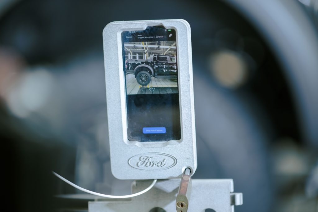 Ford’s mobile artificial intelligence vision system (MAIVS) uses advanced algorithms to scan the exterior of the vehicle for any flaws, like missing or crooked badges.