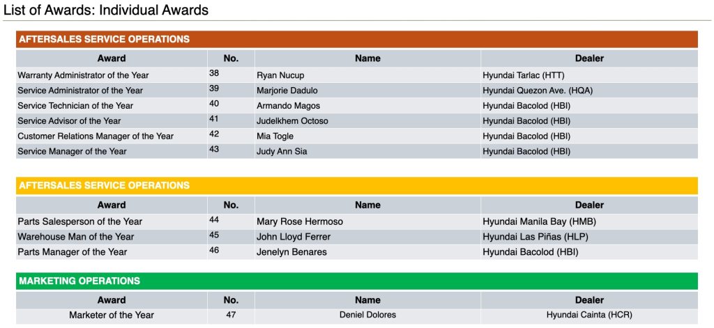 Hyundai Motor Philippines Inc. (HMPH) recently held its prestigious Dealer of the Year (DOTY) Awards at the Okada Manila Grand Ballroom, recognizing excellence in its growing dealership network. The annual DOTY Awards highlights the milestones of the brand’s growing dealer network across various categories of business operations.