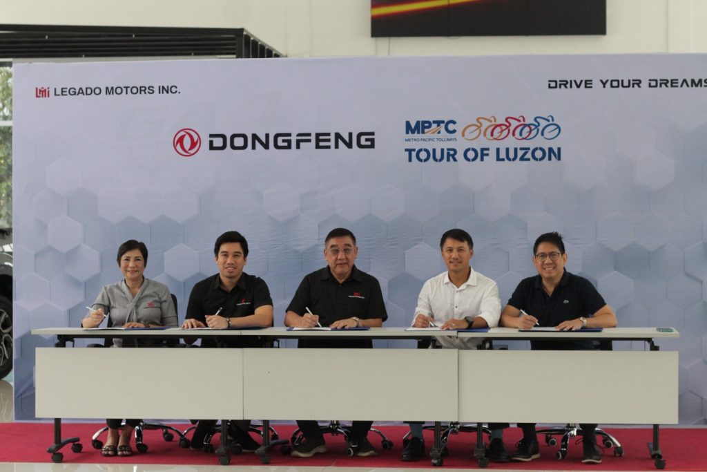 The official contract signing was held on April 14, 2025, with representatives from both organizations present to formalize the collaboration. Signing on behalf of Legado Motors Inc. were Mr. Brennan Lim (Deputy CEO), Mr. Wilbert Lim (President & CEO), and Mrs. Regina Lim (Chief Finance Officer), while Mr. Edward Allan Gregorio and Mr. Arrey Ancheta Perez represented Metro Pacific Tollways Corporation (MPTC), a key organizer of the event. The agreement establishes Dongfeng Motors Philippines as one of the major sponsors of the 2025 Tour of Luzon, a multi-leg cycling event that promotes healthy living, sports excellence, and scenic road tourism across the northern regions of the country.