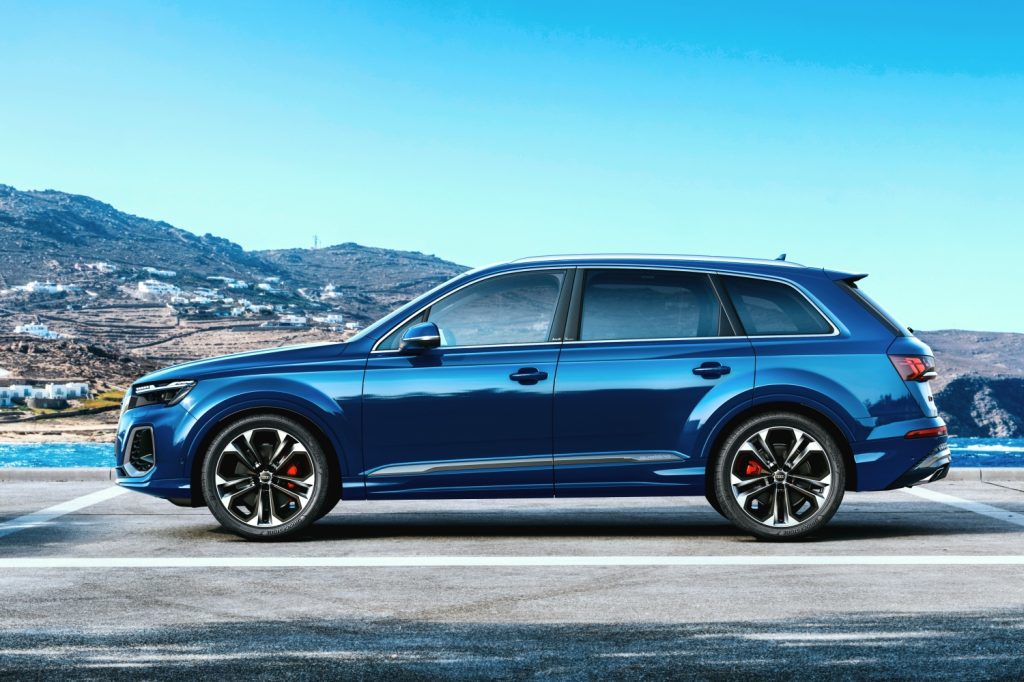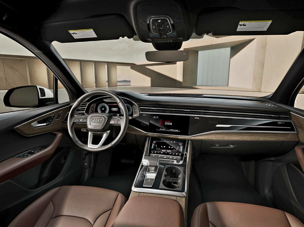 Characterizing the new Q7’s exterior are its bold Audi Singleframe grille featuring octagonal patterns and vertical inlays, matrix LED headlights with dynamic turn signals, daytime running lights that have been repositioned higher, and striking LED rear lights.