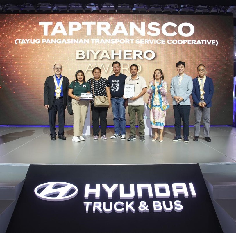 In photo: Magnificat Transport Cooperative received the Biyahenyo Award from HARI. (L-R) Chairman Richard L. Lee, Magnificat Transport Manager Mark Isla, Chairman Leonardo Llanete, and General Manager Marissa Isla; HARI Vice Chairman, President, and CEO Maria Fe Perez-Agudo, Hyundai Motor Company Asia Pacific Vice President Jun Heo, and HARI Director, Director, Treasurer, and Chief Finance Officer, Ladislao Z. Avila Jr.