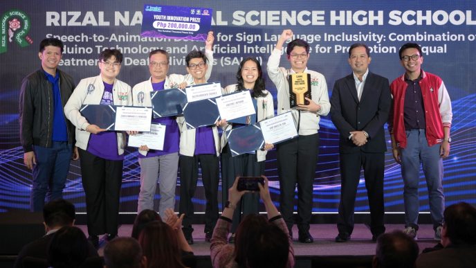 Rizal National Science High School – Speech-to-Animation Device for Sign Language Inclusivity: Combination of Arduino Technology and Artificial Intelligence for Promotion of Equal Treatment of Deaf Individuals (SALIN) Project SALIN is a wearable assistive device designed to foster inclusive communication for hearing-impaired individuals in the Philippines. The device detects speech, whether in English, Tagalog or both, and interprets information by showing the corresponding Filipino Sign Language (FSL) animated videos on the device’s screen in real time. Students from Rizal National High School were not only able to create an intelligent solution for the hearing-impaired community; more than that, the young innovators made significant contributions that will benefit the Special Needs Education (SNEd) sector — SNEd teachers, hearing families and all government agencies concerning SNEd.