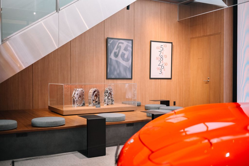 When you’re done enjoying a cup of coffee or chowing down, you can either roam around the ground floor, where there is space for a car exhibition (or two), with the general area adorned with items relevant to the car on display, found mostly on the walls or by the seats.