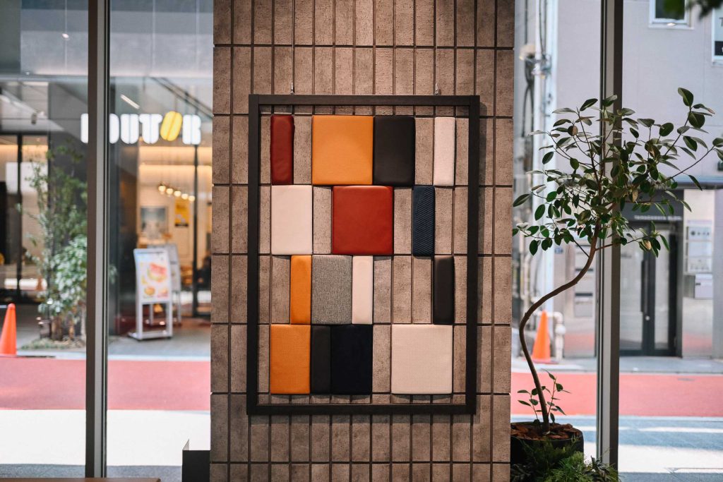 There are even a couple of artworks on the pillars that feature textiles and paint swatches, specifically those used in the automaker’s vehicles.