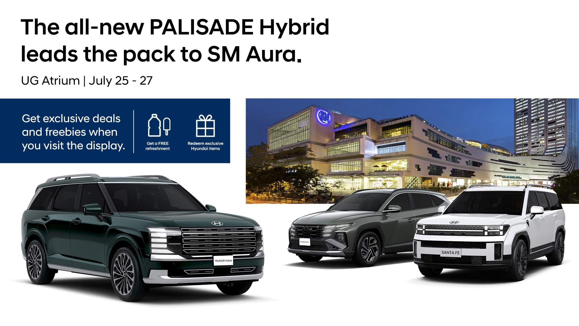 Hyundai Motor Philippines Inc. (HMPH) is bringing the all-new PALISADE Hybrid to its first public display at the Hyundai Mobility Experience (HME) in SM Aura. Mallgoers can get to be among the first to see the latest Hyundai Hybrid addition in full metal at the Upper Ground Floor Atrium, on July 25 to 27.