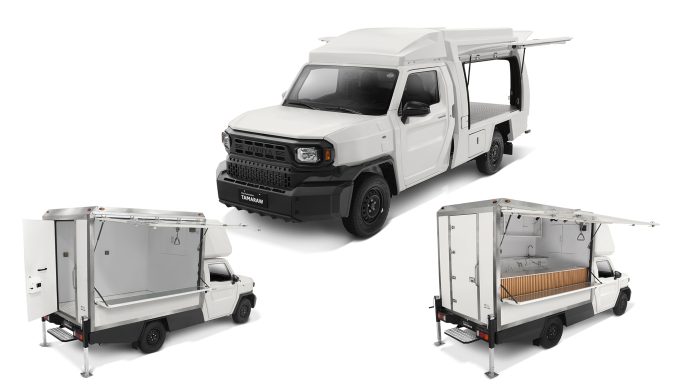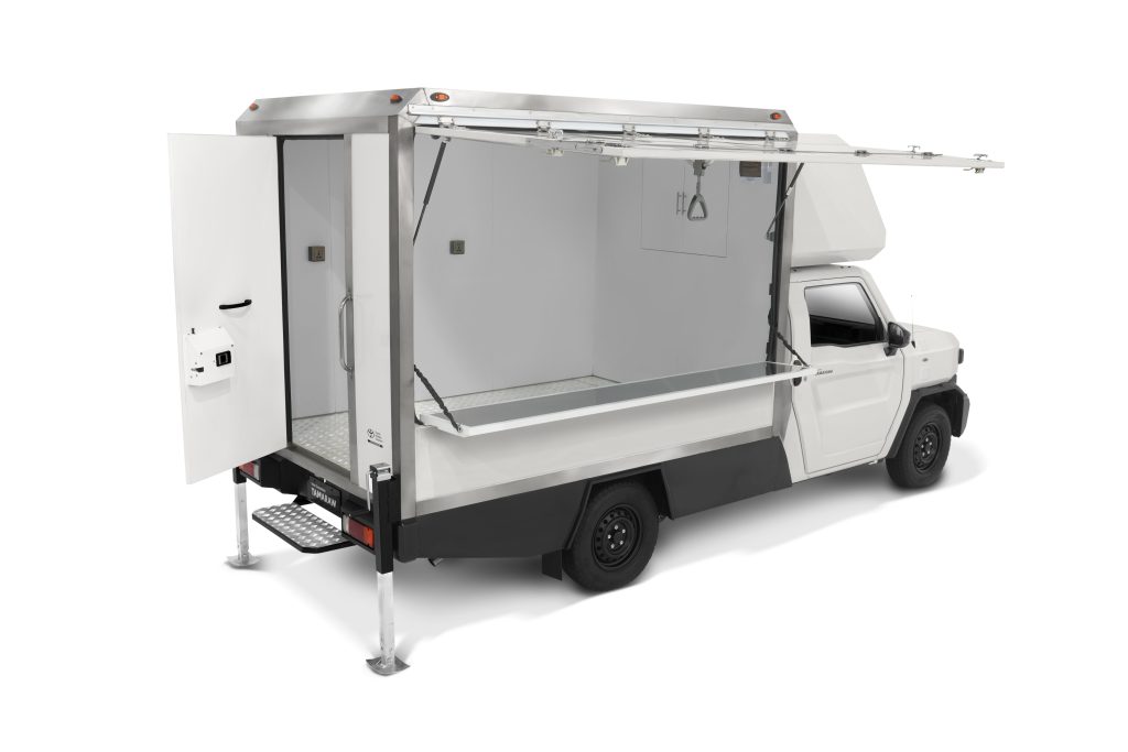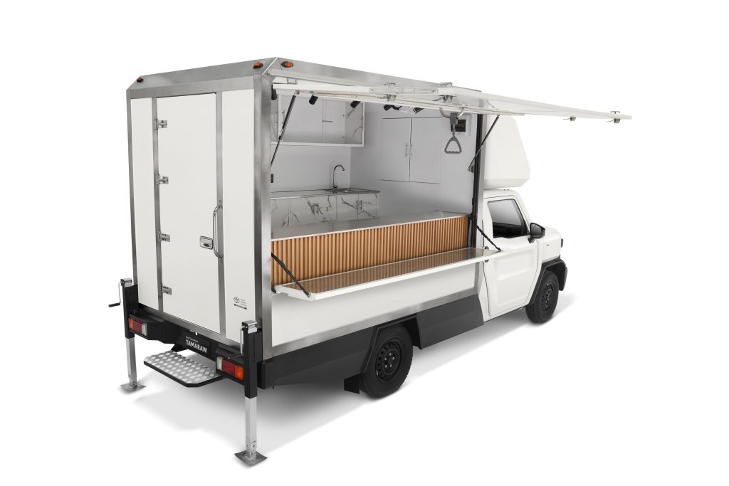 Retail MSMEs, meanwhile, will find the Tamaraw Mobile Store useful for their business, which offers a mobile platform to bring their store wherever they go. This variant provides customers the flexibility to uniquely design the interior features however they desire, whether it may be an apparel or sari-sari store. It has aluminum composite panels, a side-opening window with struts, aesthetic light fixtures, a foldable table, a functional cabinet windbreaker for additional storage, and rear jackstands for safety.