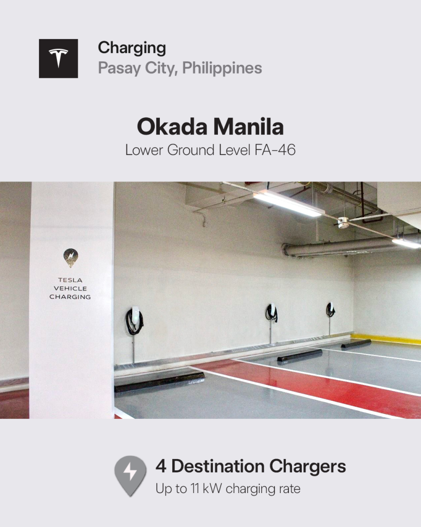 One of the newest additions to the Tesla charging network is located at Okada Manila, marking a significant milestone as the first integrated resort to host a destination charging site within Entertainment City. The partnership further strengthens the resort’s sustainability initiative, the Okada Green Heart program