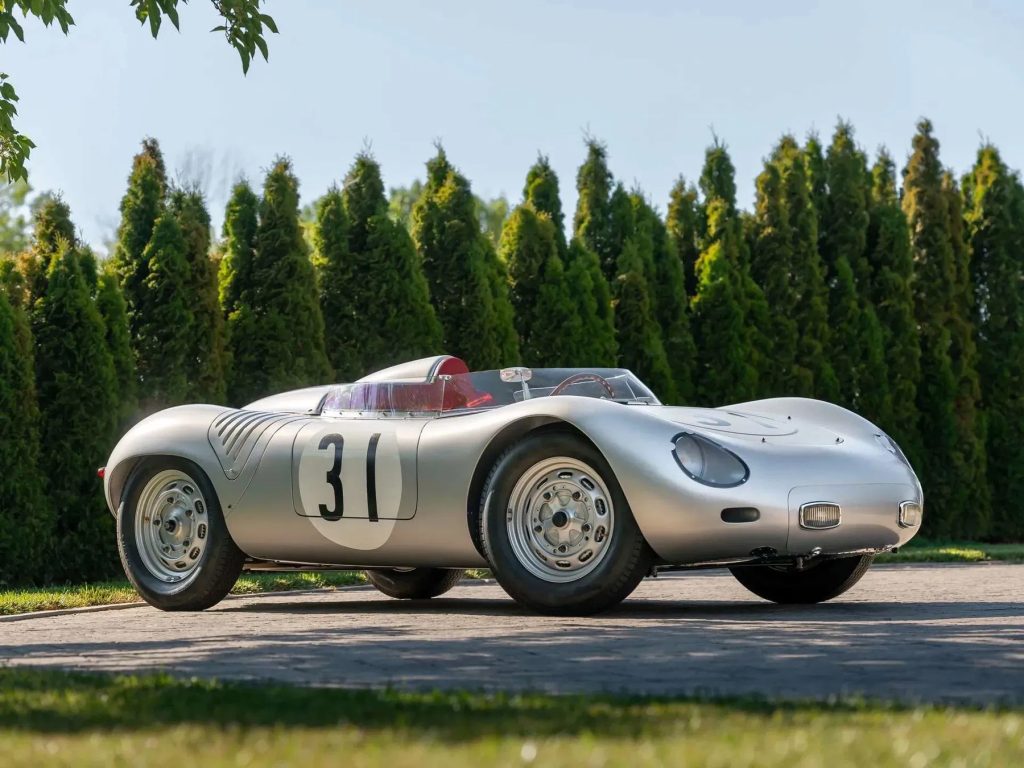 Introduced in 1957 as an even more racing focused model developed from the iconic Porsche 550 Spyder, the 718 RSK was a purpose-built race car with a lightweight frame and a mid-mounted flat-four boxer engine.