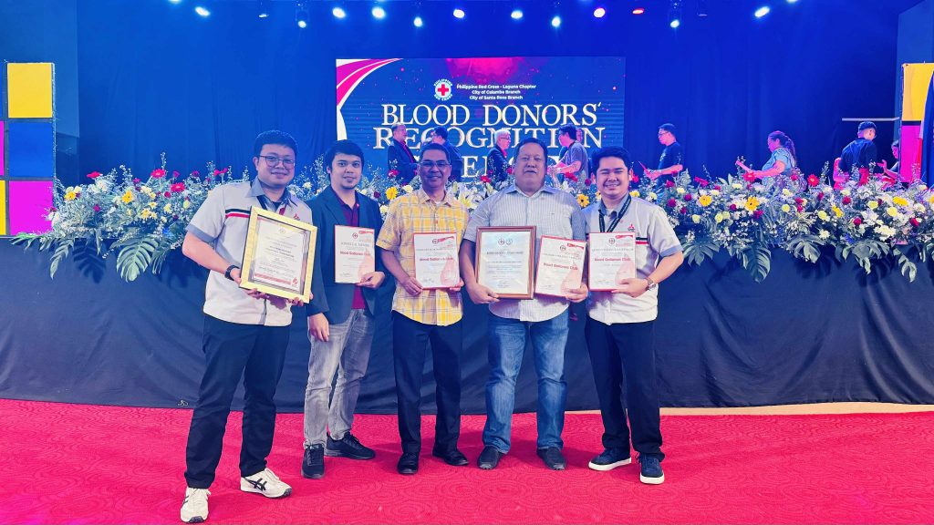 With 207 bags contributed in 2024 alone, equivalent to 93,150cc of blood, the Laguna Chapter of Red Cross also presented a platinum recognition to the company. The award was conferred during the Philippine Red Cross Blood Donation Recognition and Awarding Ceremony held at the Santa Rosa City Auditorium.