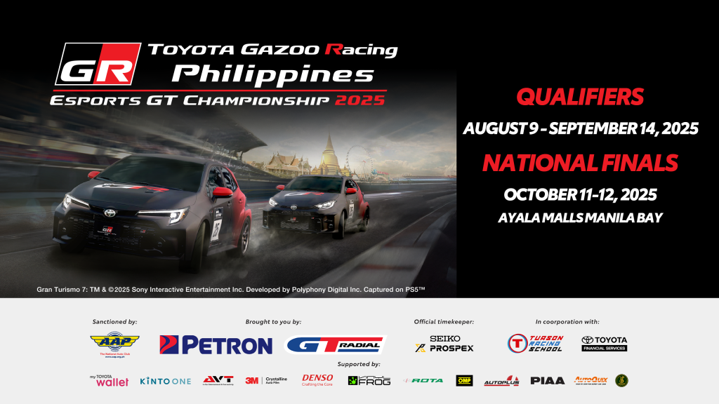The TOYOTA GAZOO Racing Philippines eSports GT Championship 2025 is sanctioned by the Automobile Association Philippines and is brought to you by Official Fuel & Lubricants Partner Petron and Official Tire Partner GT Radial.