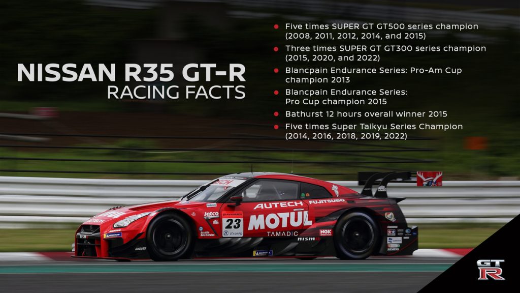 The R35 GT-R departs having achieved an enviable list of track and motorsports accolades. The extensive list includes five GT500 class and three GT300 class wins in Japan’s SUPER GT Championship, victory in the 2013 Blancpain GT Series Pro-Am class, a Bathurst 12-hour victory in 2015 and five Super Taikyu Japanese endurance racing series victories.