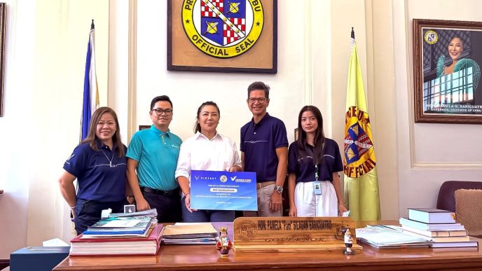 Ms. Pamela Baricuatro – Governor of Cebu Province (in white) receives a donation of 10 million pesos from representatives of VinFast and Green GSM on behalf of the local government