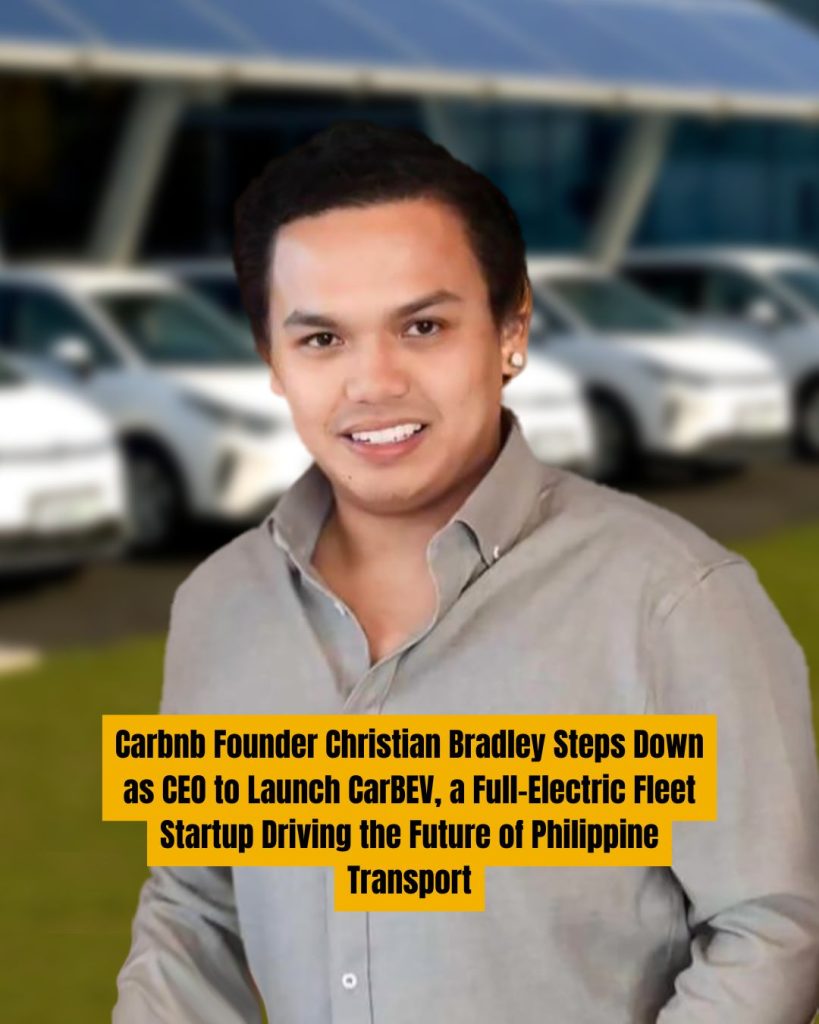 Christian Bradley, founder and former CEO of Carbnb, has stepped down from his post to lead CarBEV, a new venture focused on building the Philippines’ first large-scale fleet of battery electric vehicles (BEVs). The move marks a defining shift in Bradley’s journey as an entrepreneur, from pioneering shared mobility to championing sustainability and social impact through clean transport innovation.