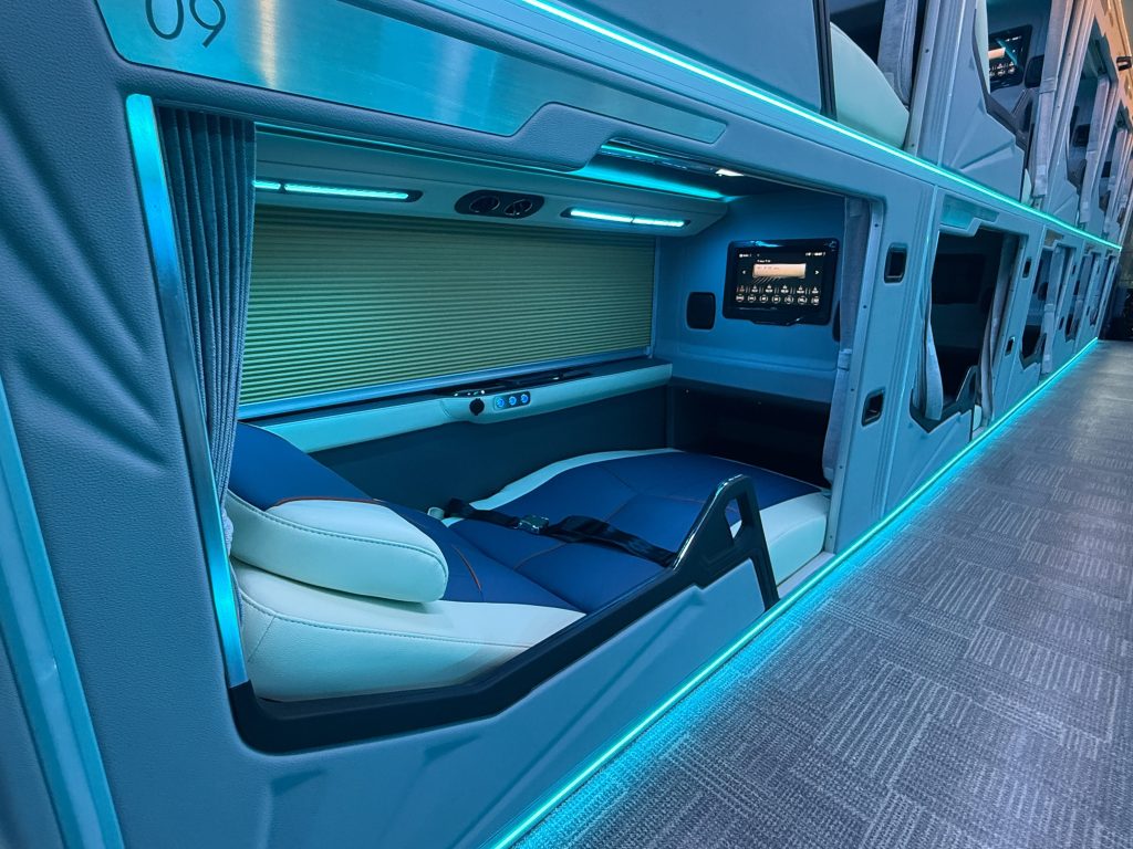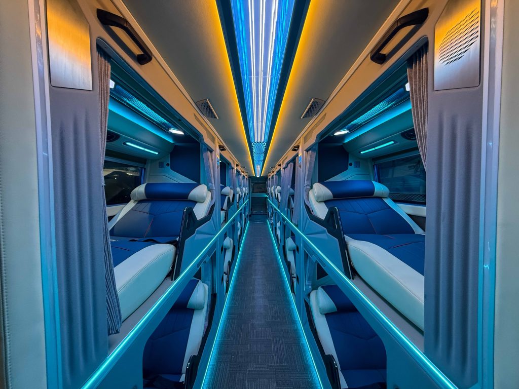 Cagsawa Travel and Tours had a lot of design inputs, especially on the interiors, to ensure top-notch passenger experience on every journey. The 20 sleeper cabins of the bus features premium materials with meticulous attention to detail, ensuring maximum comfort and privacy for passengers. It is equipped with high-end amenities, including an LCD entertainment screen, bedroom light, Type A & C phone charging ports, and a well-appointed toilet. Notably, the UV ceiling lights combined with ambient lighting create a luxurious atmosphere.