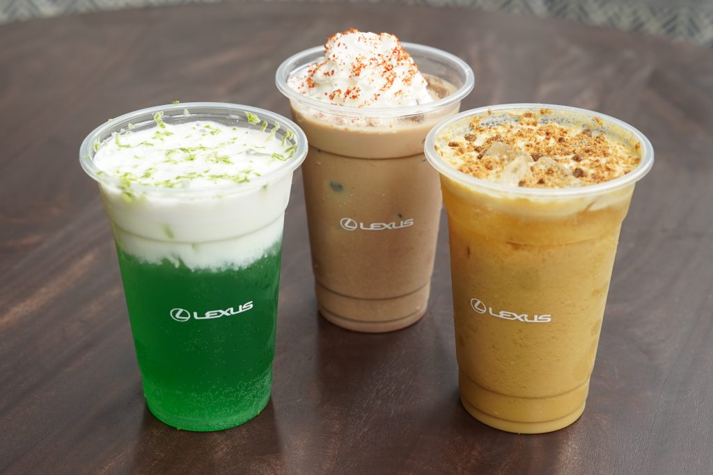 The new drinks emulate Lexus’ Takumi value of craftsmanship in their robustly crafted but well-balanced flavors. Velvet Peach & Toffee pairs ripe peach with brown toffee crumble, milk foam, and ginger ale for a soft, comforting sweetness. The Chili Mint Nama Latte plays with contrast, where subtle heat and freshness meet silky nama chocolate and No. 18 espresso, offering a latte that surprises without overwhelming. A Melon Citrus Cream Soda refreshes the palate, combining melon and lime with milk foam and soda water for a light, clean finish. This new selection of assertive flavors showcase Lexus’ unapologetically creative side, innovating familiar tastes with purpose and poise.