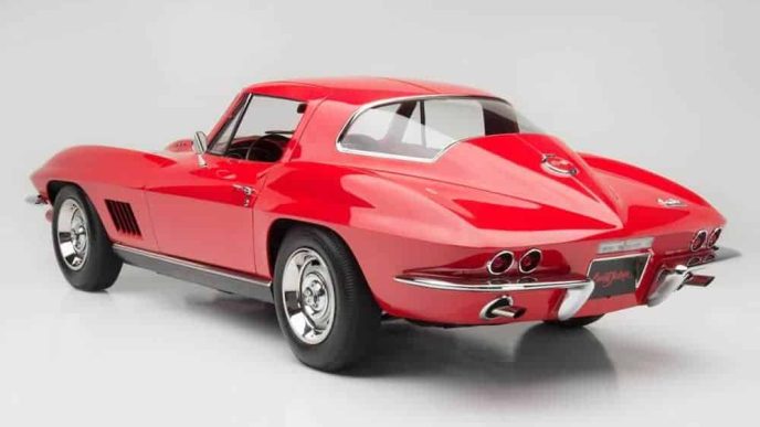 5. 1965 Chevrolet Corvette Cutaway Coupe. Sold in 2018 for US$1,100,000, this unusual vehicle began its life as a road-ready production model, but was fully disassembled and rebuilt as this one-of-a-kind display stand for use by GM and Chevrolet on the auto show circuit.