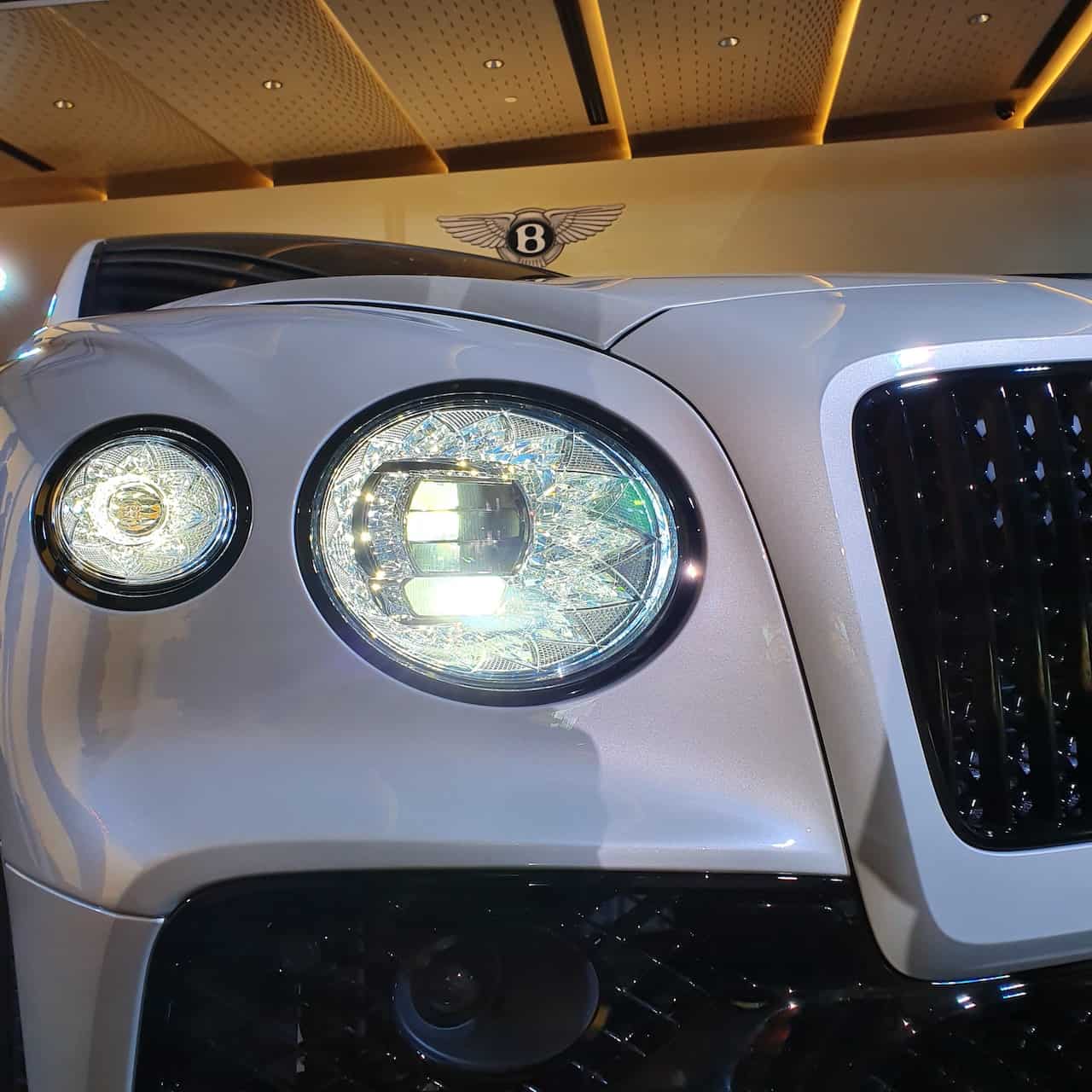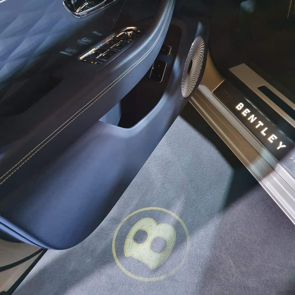 Each door boasts a puddle light that projects a Bentley logo onto the ground.