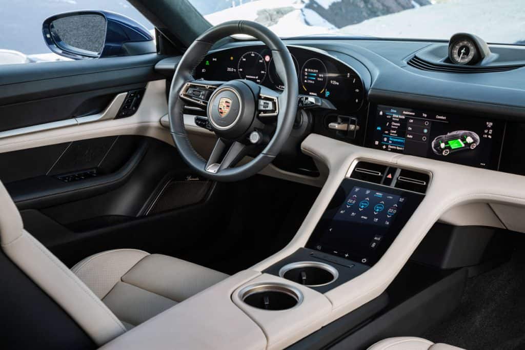 The Taycan gets the option of an entirely leather-free interior. This use of innovative recycled materials underscores the sustainable concept of the fully electric sports car.