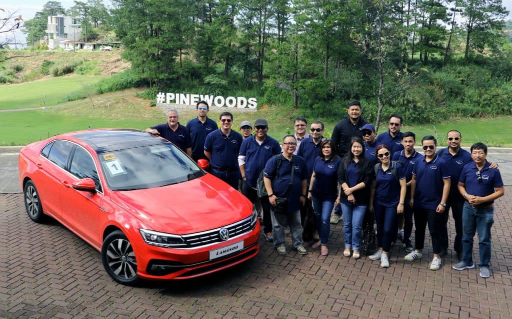 Members of the media pose with VW executives and the VW Lamando at the picturesque Pinewoods Golf and Country Club.
