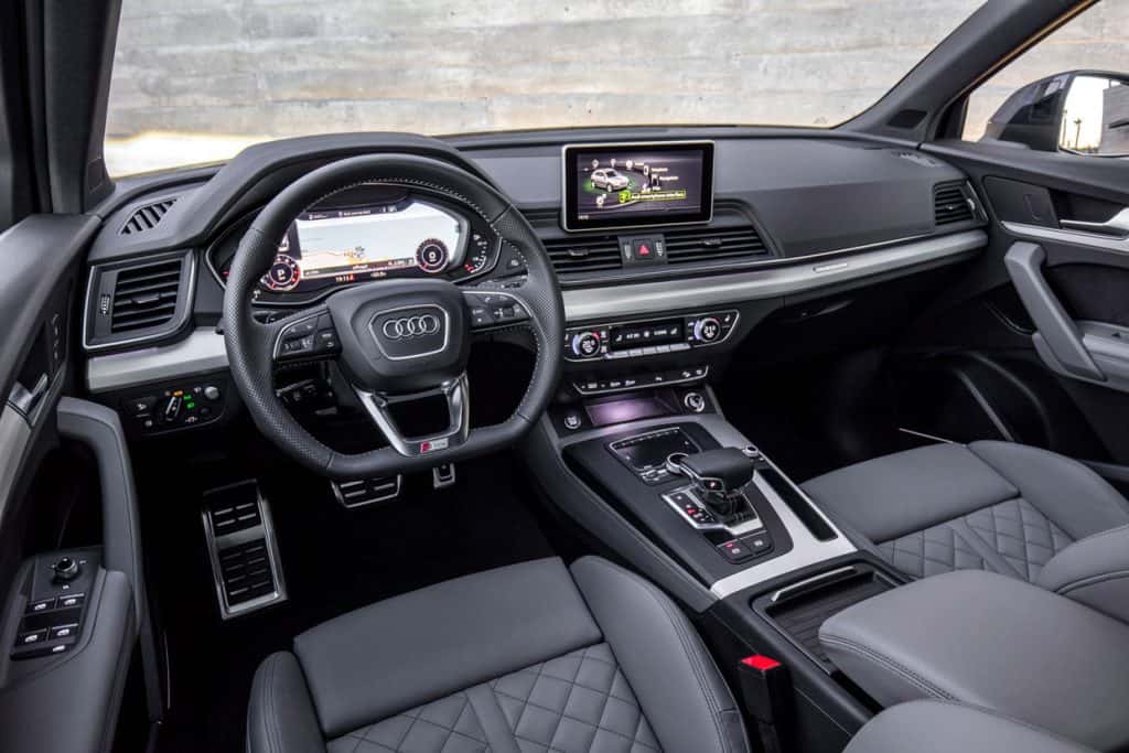 Inside the 2020 Audi Q5 Prestige are leather Comfort Seats, which have sharply contoured side bolsters, power adjustments for the driver’s seat (or both front seats), a memory function and pneumatic lumbar support. A distinctive strip of aluminum-look trim frames the upper zone of the dashboard, running across the full width of the instrument panel to reinforce the feeling of generous space. The model’s steering wheel has been redesigned and features multifunction buttons and paddle shifters.