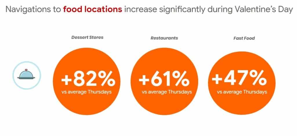 One of the keys to one’s heart is through their stomach. Thus, it comes as no surprise that most Filipinos take their dates out for a sumptuous meal on Valentine’s Day. Navigations to food locations grow significantly on February 14 compared to an average day.
