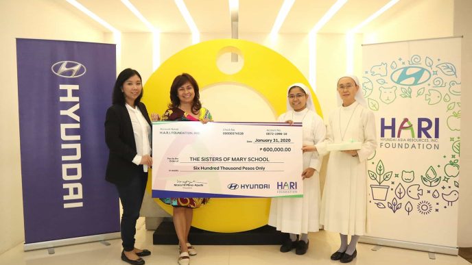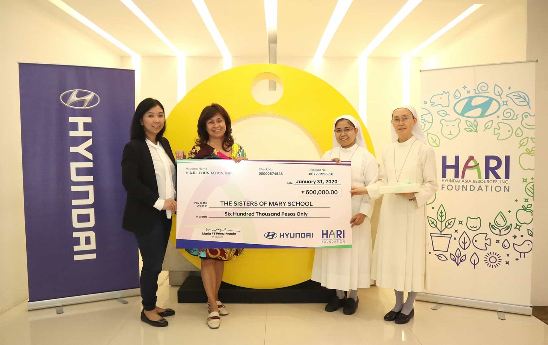 Sustaining its commitment to contribute to empowering underprivileged Filipino youth through education, H.A.R.I. Foundation, Inc. (HFI), the corporate social responsibility (CSR) arm of Hyundai Asia Resources, Inc. (HARI), turned over a generous cash donation to its newest partner, the Sisters of Mary School (SMS).