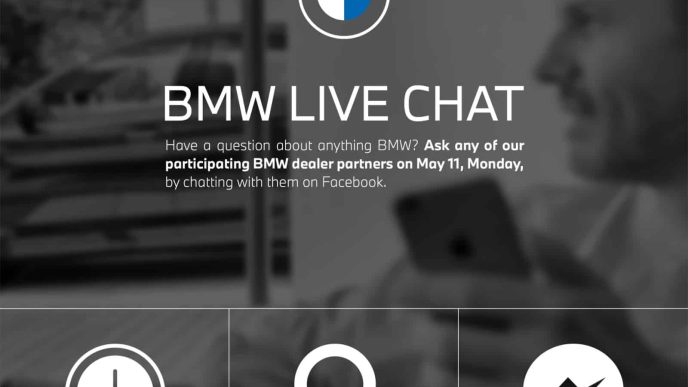 More information on the specific BMW Live Chat schedules may be found on the Facebook pages of participating BMW dealers: