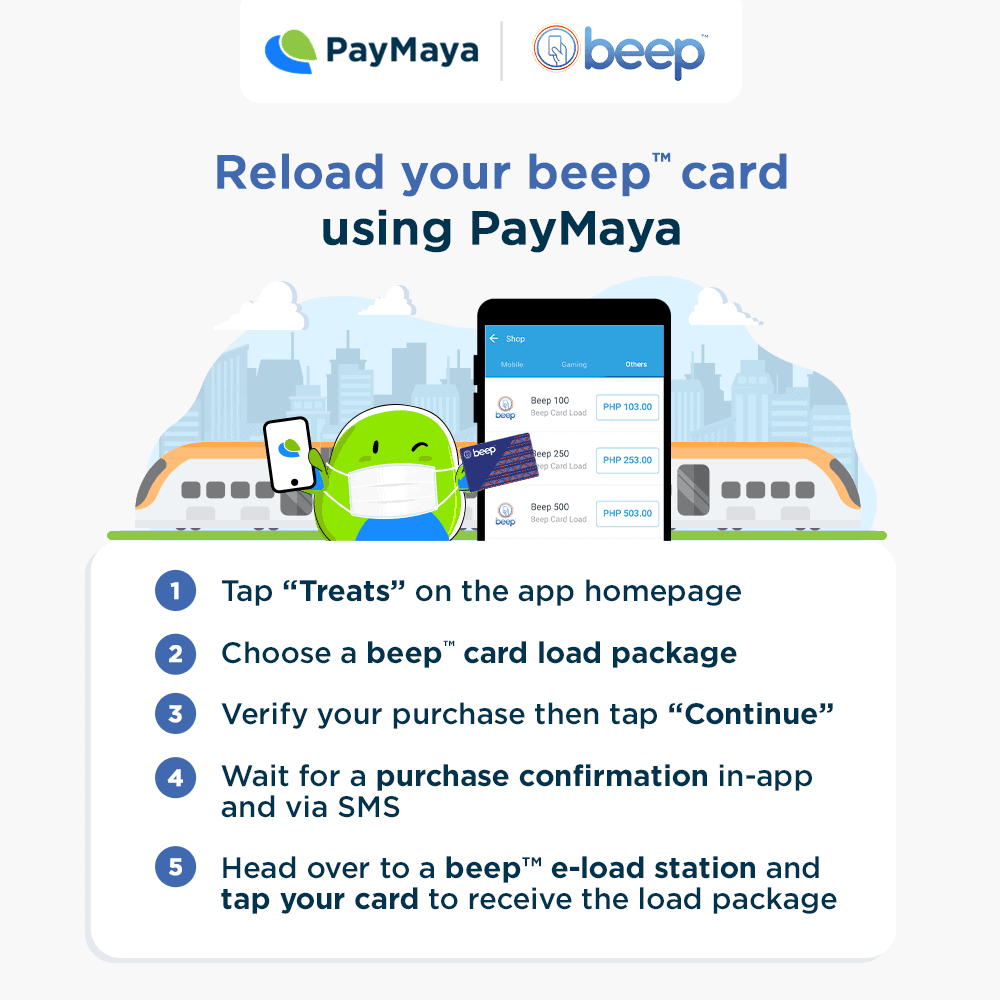 On the PayMaya app, users can now choose among three load packages: P100, P250 and P500 with an additional P5 convenience fee. Once the beep card is loaded, it can be used as an alternative payment option on LRT-1, LRT-2, MRT-3, point-to-point and city buses as well as modern public utility vehicles.